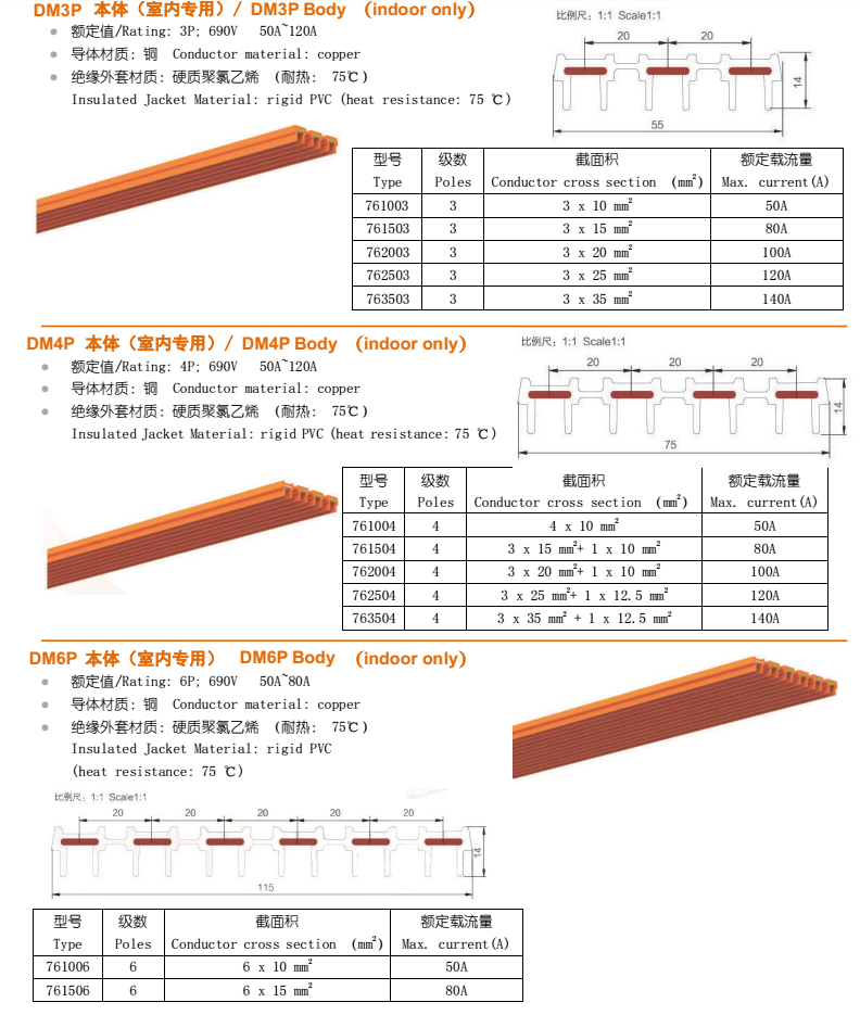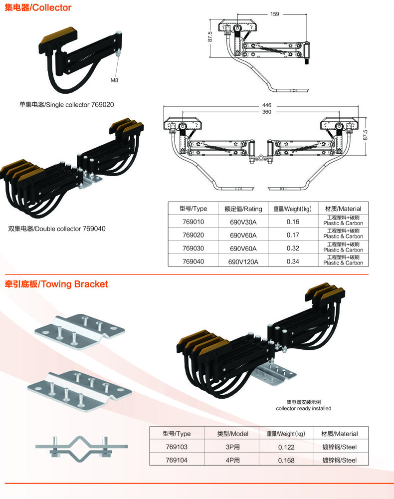 DMWJF型無接縫安全滑觸線結(jié)構(gòu)由PVC塑料板與銅片構(gòu)成,其主要有三級、四級、六級等三個種類。 DMWJF型無接縫滑觸線主要配件有一字型支架、提掛架、集電器、中間供電器、拉緊器、集電器支架等配件。德瑪牌無接縫滑觸線導體材料采用T2紫銅,增加導體導電性能,外殼為PVC加碳酸鈣粉材料,增加其柔韌性及其硬度,保證其使用壽命。 無接縫滑觸線主要應(yīng)用在自動化設(shè)備、立體車庫、車間流水線、起重設(shè)備供電等相關(guān)行業(yè),無接縫滑觸線要求軌道運行長度最好不要超過100米,運行速度每分鐘不能超過200米。