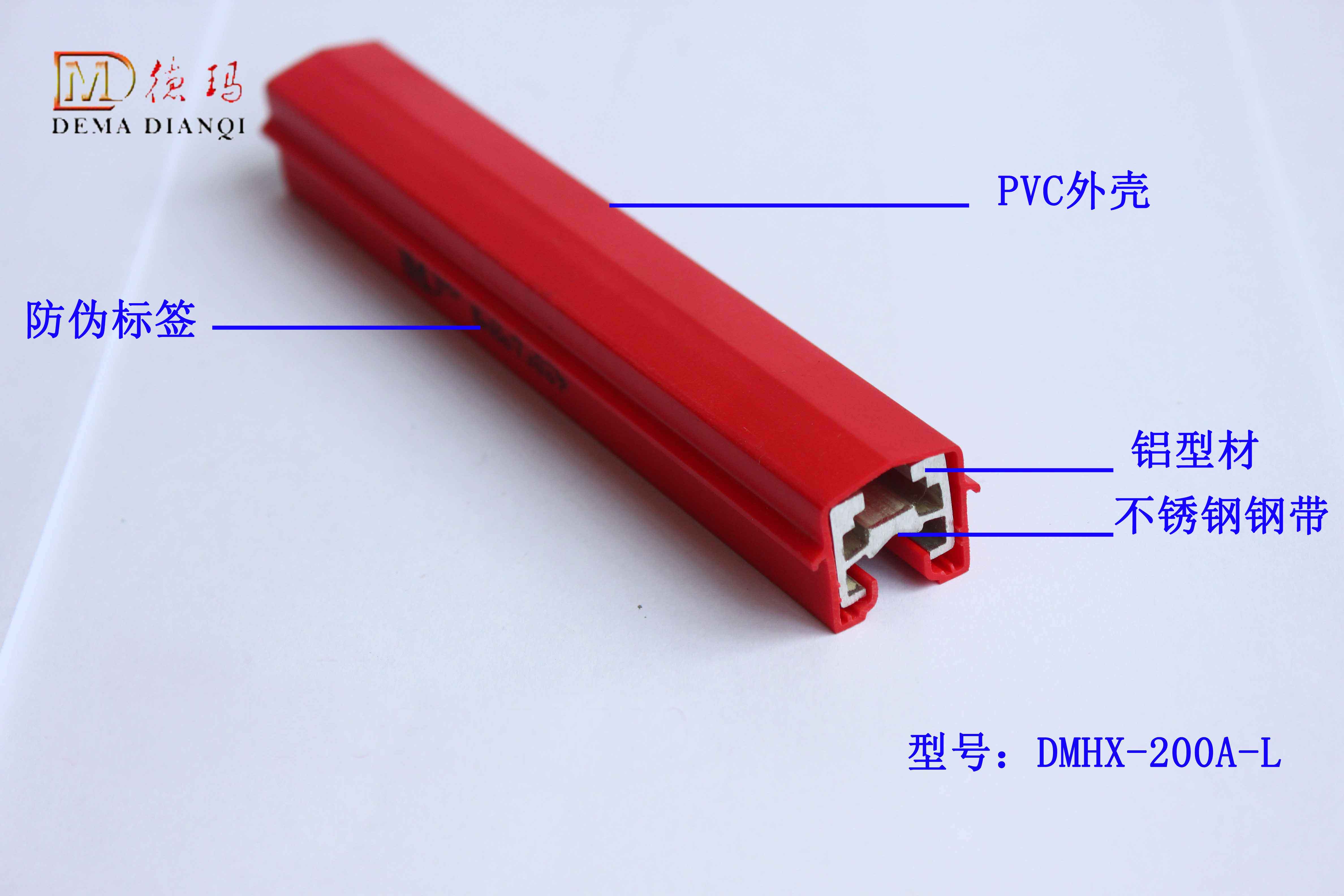 其次,該類型產(chǎn)品結(jié)構(gòu)為:紅色外殼為PVC材料,外加阻燃材料;導(dǎo)體為6101專業(yè)導(dǎo)電鋁;并且在鋁型材內(nèi)部嵌入304牌號(hào)不銹鋼鋼帶;提高起耐磨性。